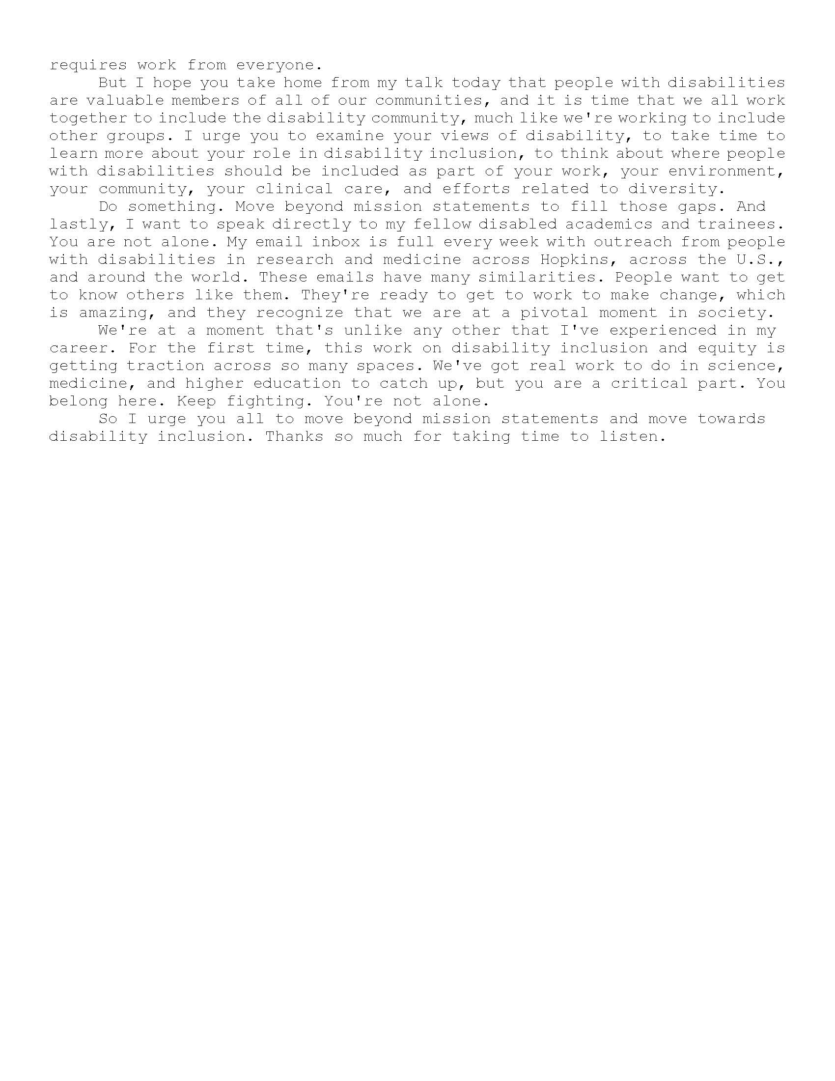 Introduced by PhD student Nicole Pannullo, Dr. Chad Ruffin delivered the January 2021 Equal Access lecture, sponsored by the Johns Hopkins Disability Health Research Center, the Johns Hopkins Alumni Association, Johns Hopkins University Student Disability Services, the Johns Hopkins School of Medicine Office of Graduate Biomedical Education, the Johns Hopkins Medicine Office of Diversity, Inclusion and Health Equity, and the Johns Hopkins School of Medicine Graduate Student Association.